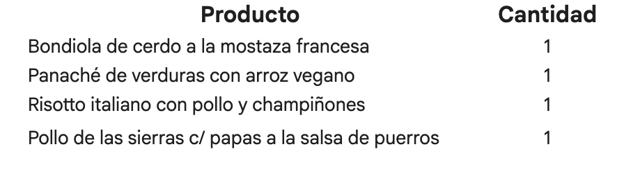 El pack sin TACC incluye los siguientes productos y cantidades de cada uno: